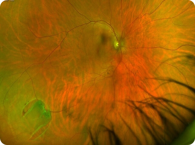 Provides a broad view of the retina to detect peripheral retinal conditions that may be missed with conventional imaging.